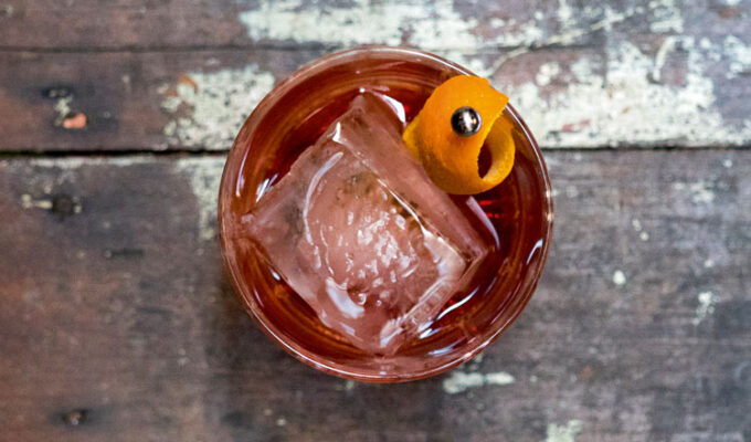 This cocktail comes from the sadly defunct Seymour’s Cocktails & Oysters. We love this because it uses the grapey delights of Pineau des Charentes (a French aperitif of grape juice fortified with grape eau de vie); just be sure to use a healthy measure of a punchy bourbon.