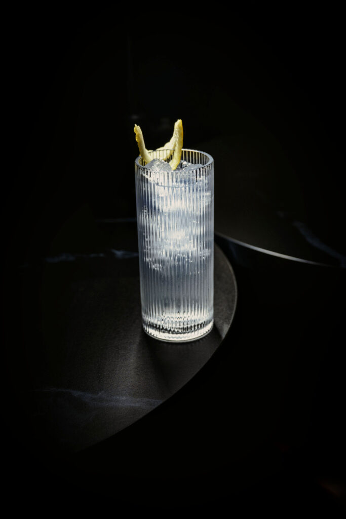 Before pouring, it is briefly stirred with ice to bring its temperature closer to that of the tonic water, enabling the ingredients to harmonise smoothly. Tonic water is always freshly opened and chilled before use.