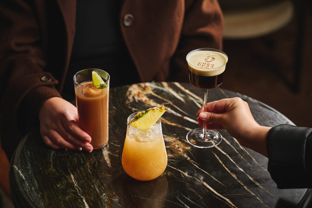The Irish BOSS takes the classic Irish coffee for a Japanese spin, combining Suntory BOSS Coffee Iced Long Black with Suntory Toki Whisky, hojicha tea and a rich hojicha cream – you can even have your face printed on top when ordering this cocktail. Rounding out the lineup is the Japanese Cola, a Batanga-style number featuring Suntory BOSS Coffee Iced Double Espresso, Haku Vodka, Amaro Nonino, cola and lime.