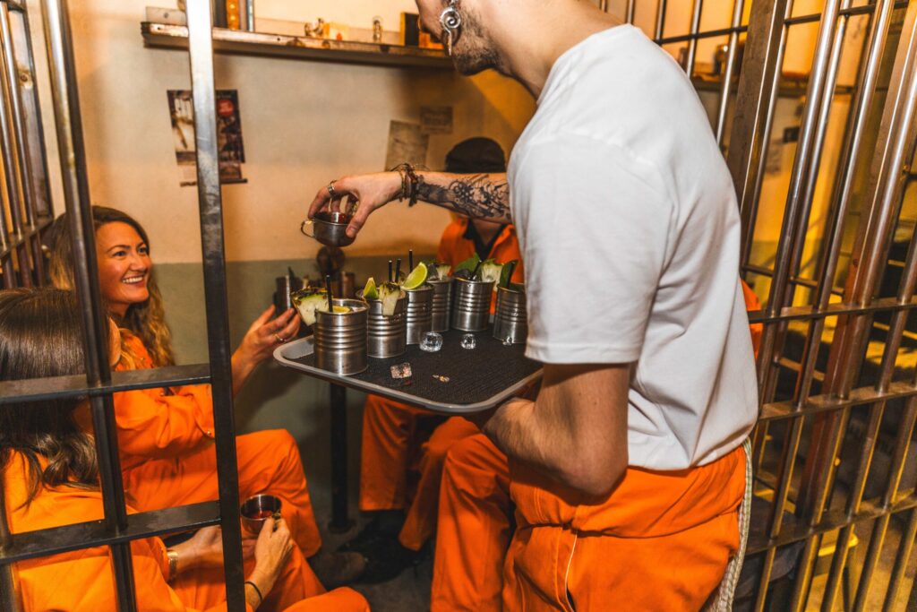 In front of a nondescript building in Fortitude Valley, you’re handed a pack of (fake) cigarettes and ushered inside for processing. You’re given an orange prison jumpsuit and assigned to one of six cells by the surprisingly friendly guards, who assure you that although booze is banned in Alcotraz, the rules can be bent.